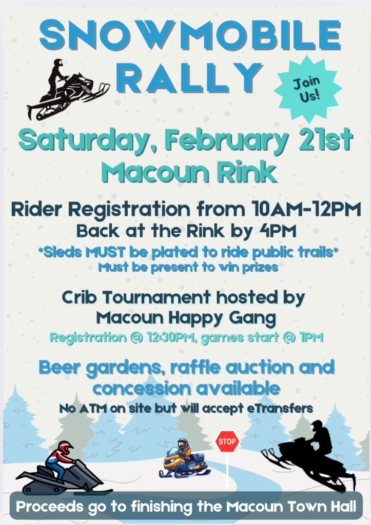 Macoun Happy Gang will be doing a crib tournament, registration starting at 12:30